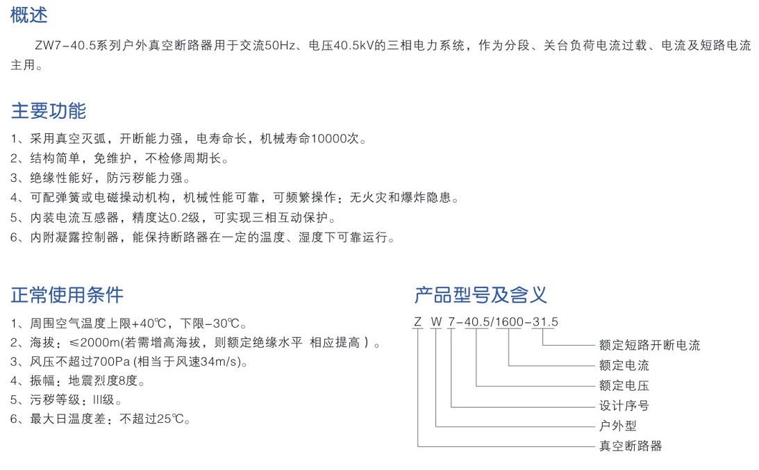ZW7-40.5系列戶外真空斷路器