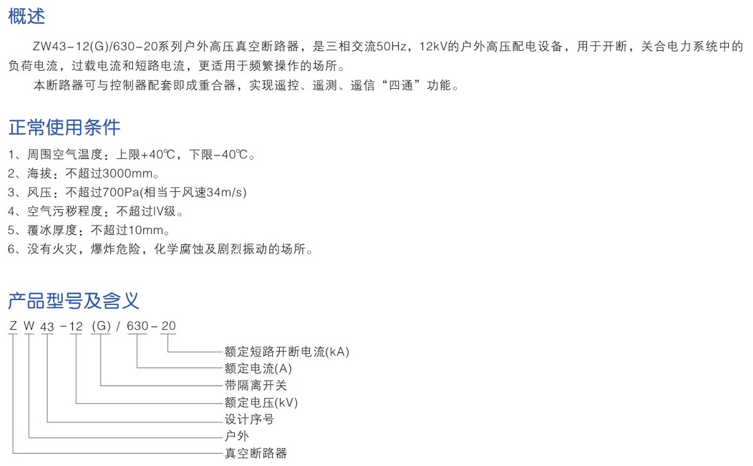ZW43-12Y(G)/630-20戶外真空斷路器