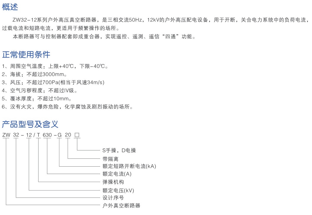 ZW32-12MG/630-20系列永磁戶外真空斷路器